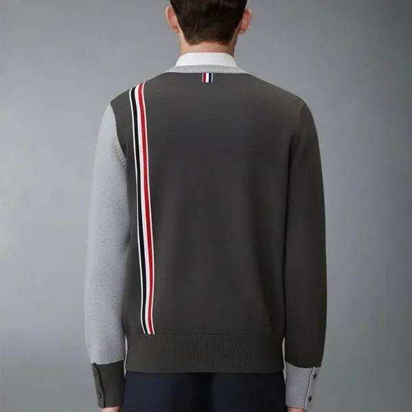 톰브라운 밀라노 사선 완장 라운드 니트 – 그레이 🍀#2392