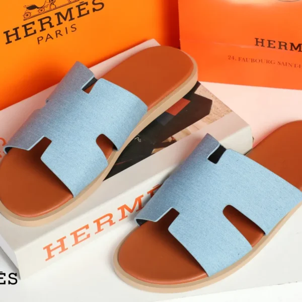 에르메스 이즈미르 H로고 레더 샌들 슬리퍼 스카이블루_골드