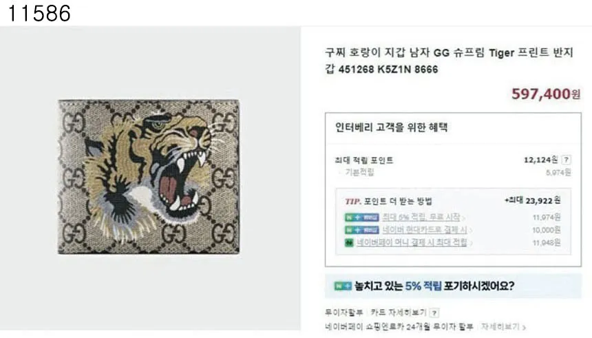 구찌 GG 슈프림 타이거 반지갑 수입프리미엄급 신상 입고💢 #태그 #지갑 #11586