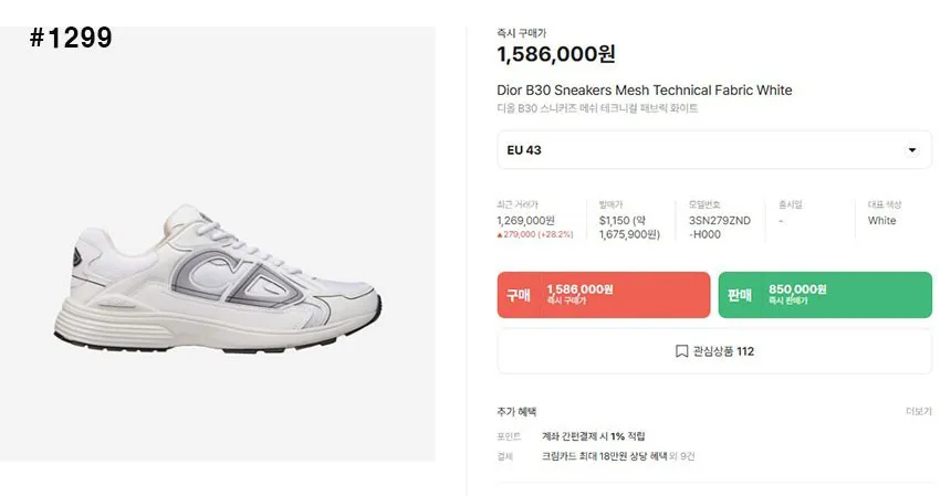 디올 B30 메쉬 스니커즈 #1299