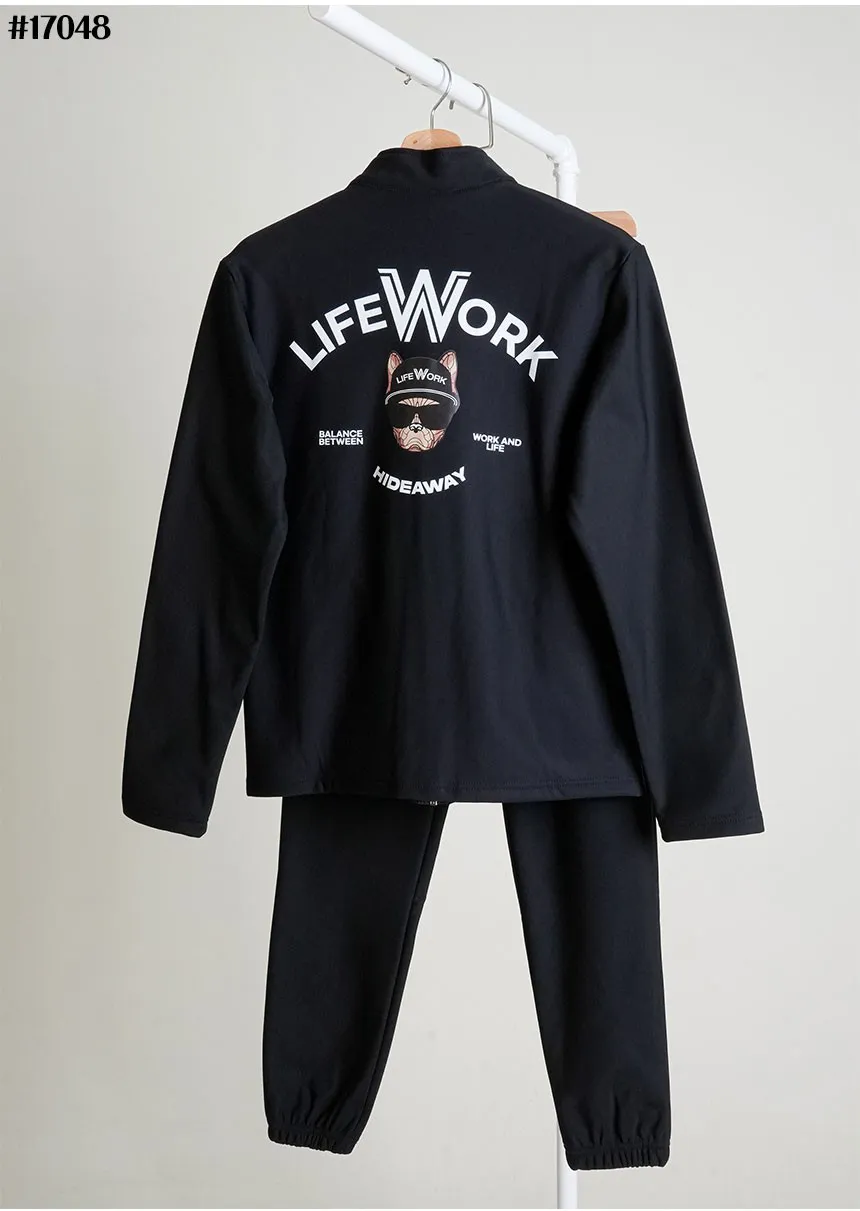 라이프워크 힙독 그래픽 기모 본딩 풀집업 저지 & 기모 본딩 조거 팬츠 셋 #17048