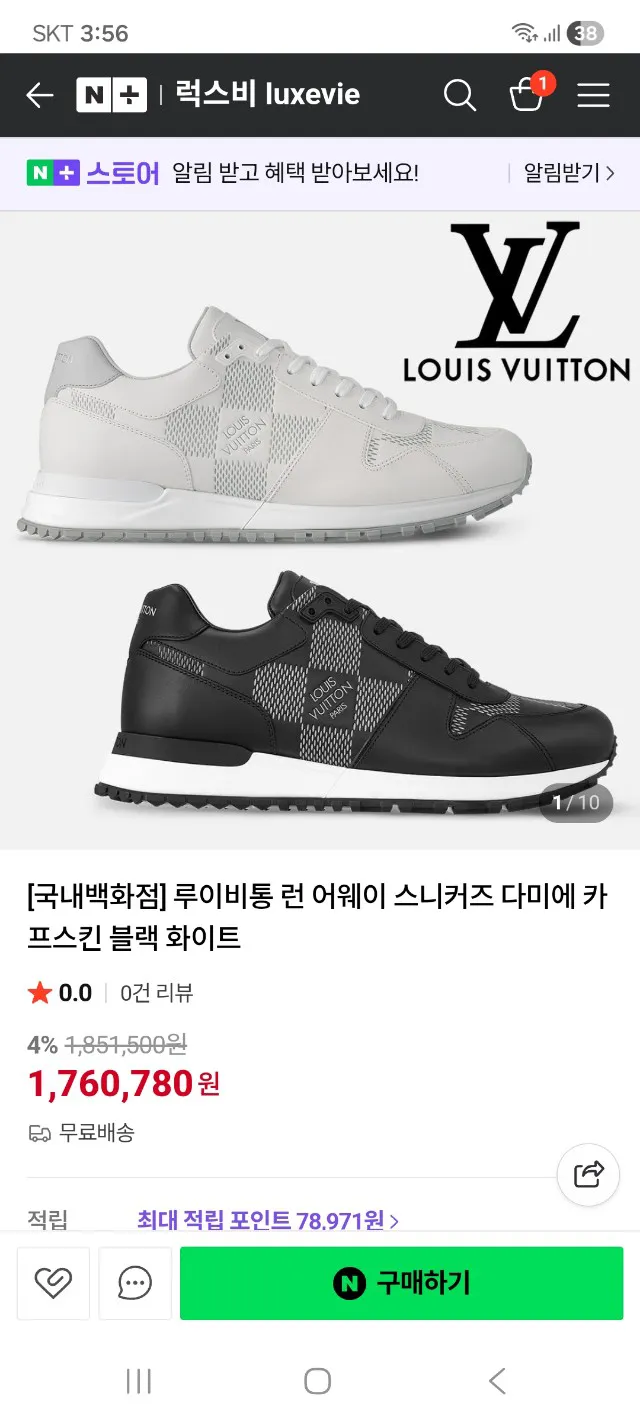 루이비통 런 어웨이 다미에 남성 스니커즈 블랙