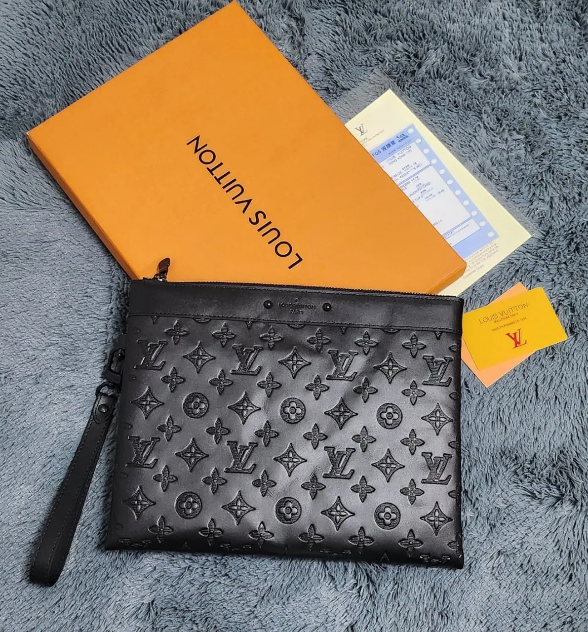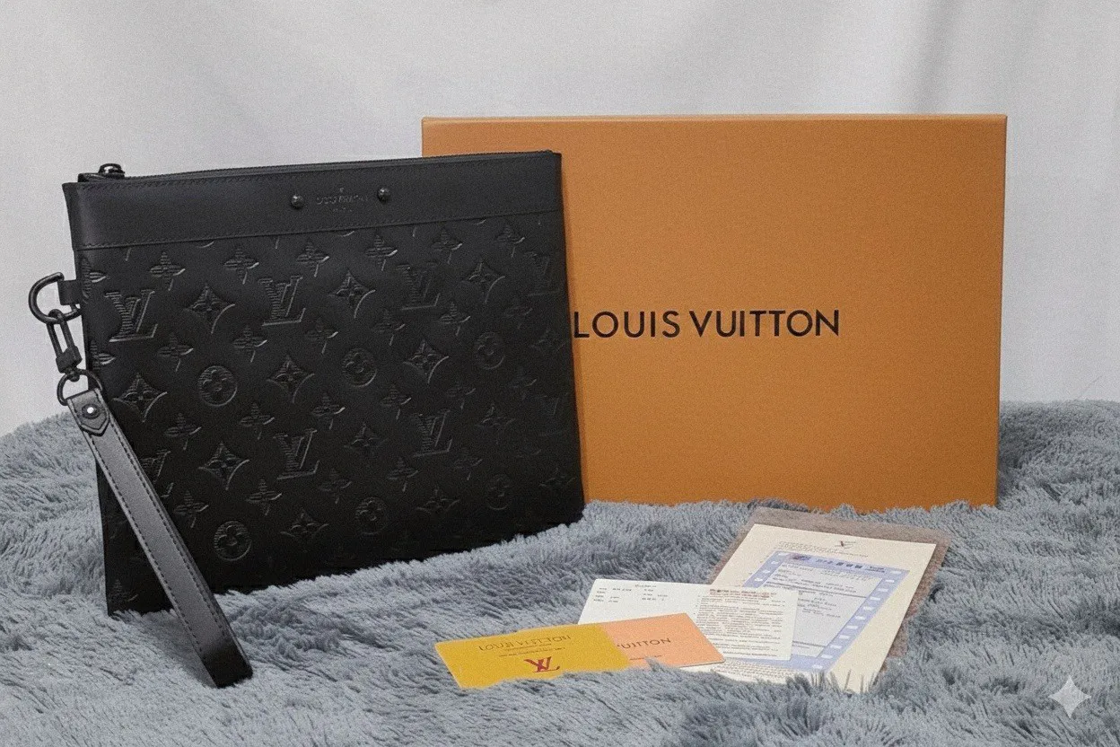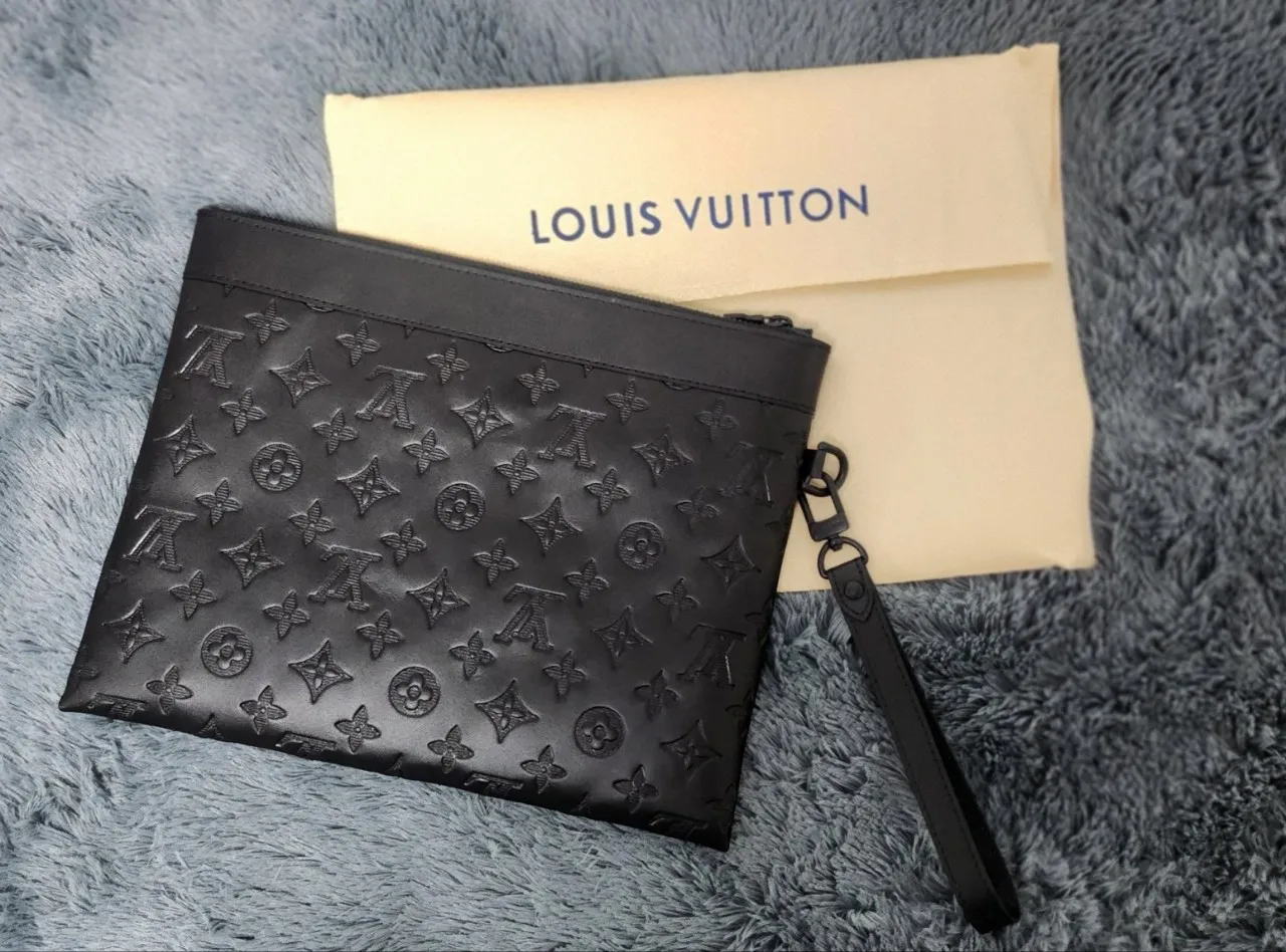 루이비통 포쉐트투고 쉐도우 블랙 레더 클러치백
