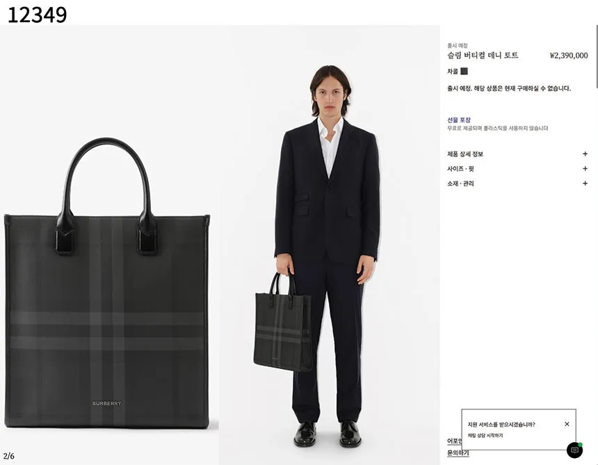 버버리 수입프리미엄급 버버리 슬림 버티컬 데니 토트 #12349
