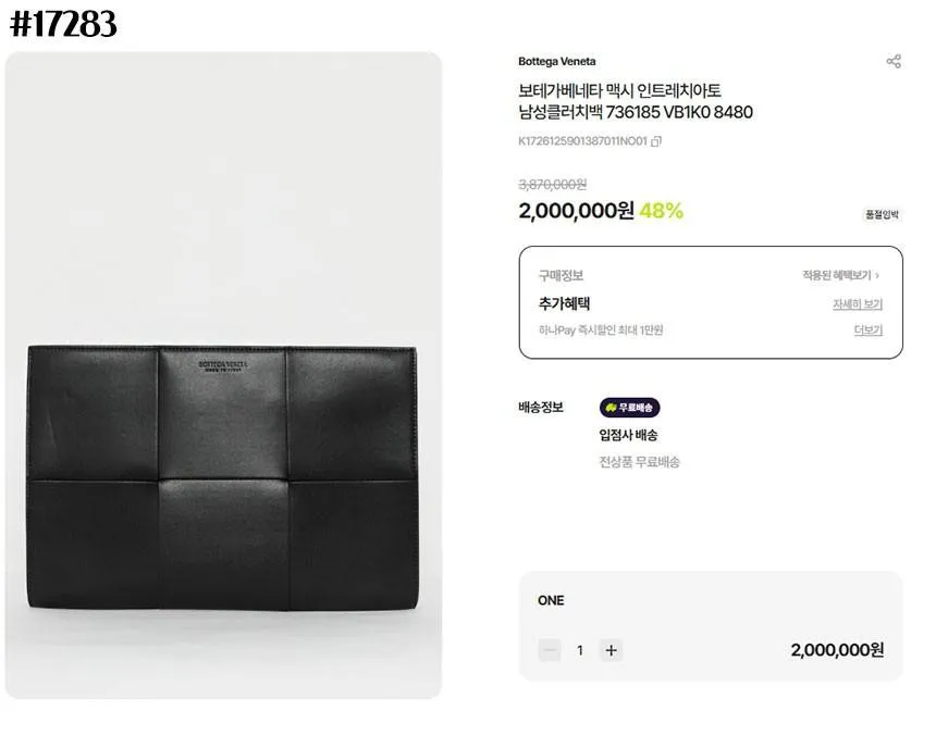 보테가베네타 맥시 인트레치아토 레더 클러치 백 🔆#17283