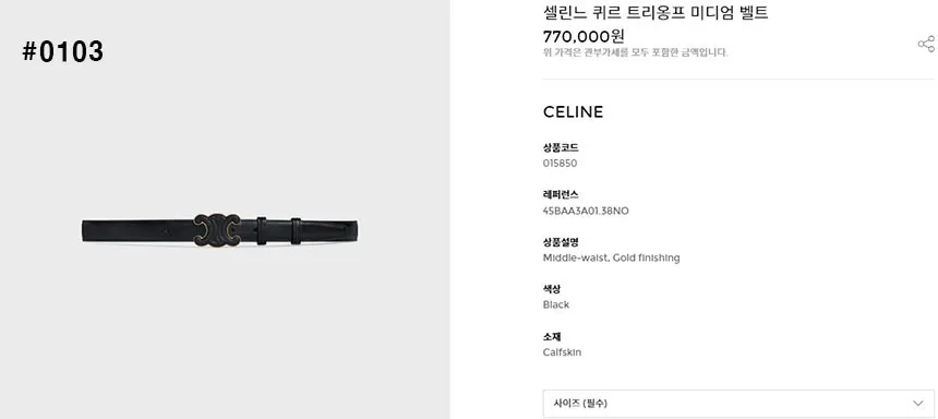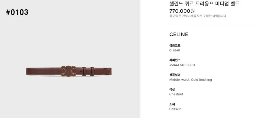 셀린느 퀴르 트리옹프 미디엄 벨트 🍀#0103