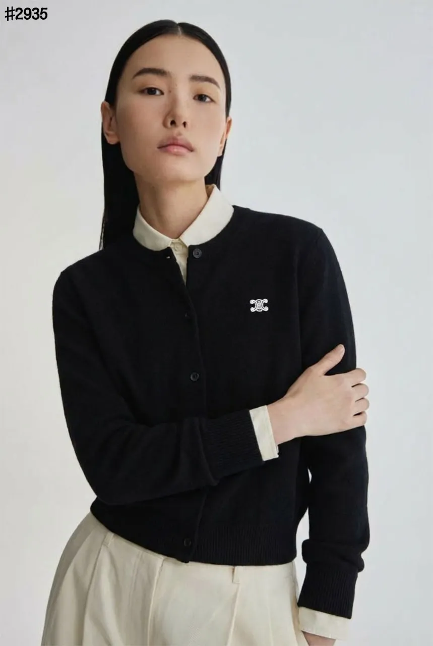 셀린느 트리옹프 자수 로고 라운드넥 니트 가디건 🍀#2935