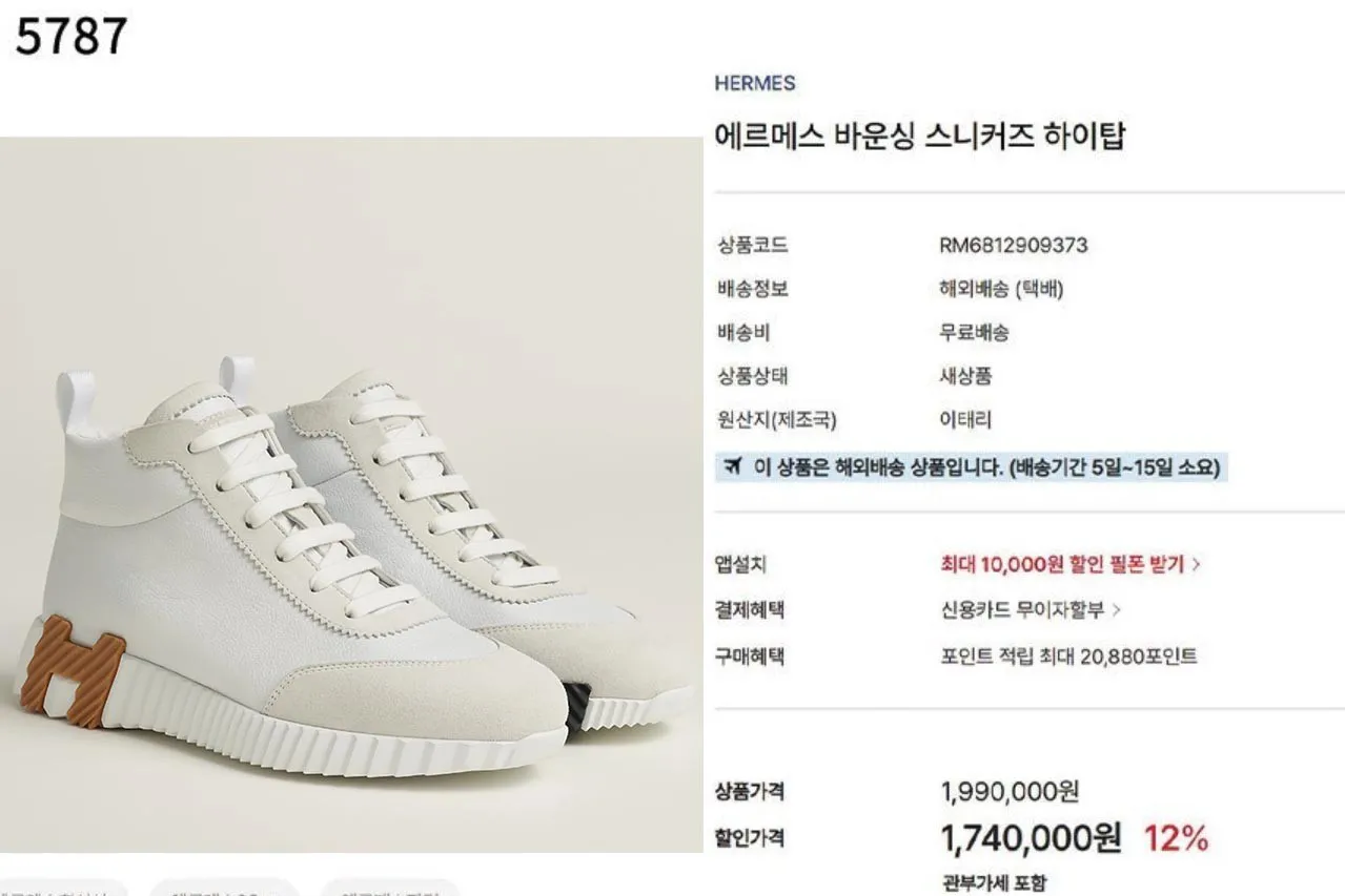 에르메스 바운싱 스니커즈 하이탑 수입프리미엄급 신상 입고💢#신발 #5787