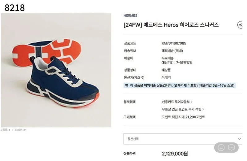 에르메스 히어로즈 스니커즈 수입프리미엄급 신상 입고💢 #신발 #8218
