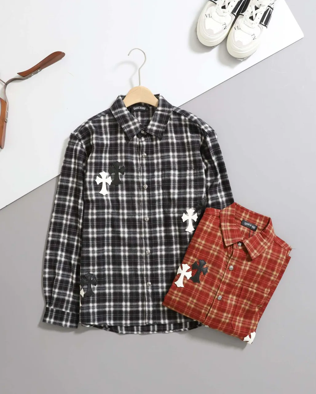 크롬하츠 입 세메터리 체크 셔츠