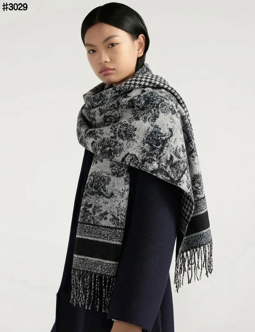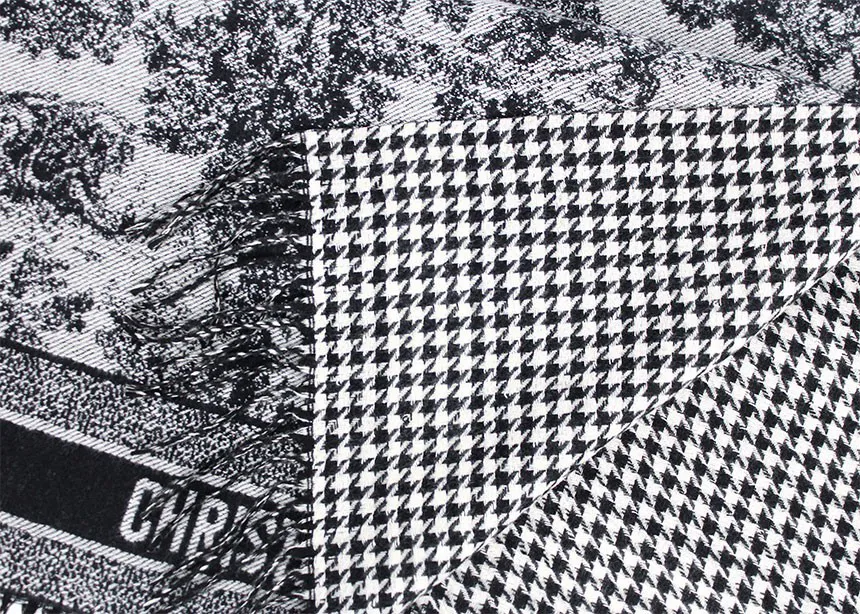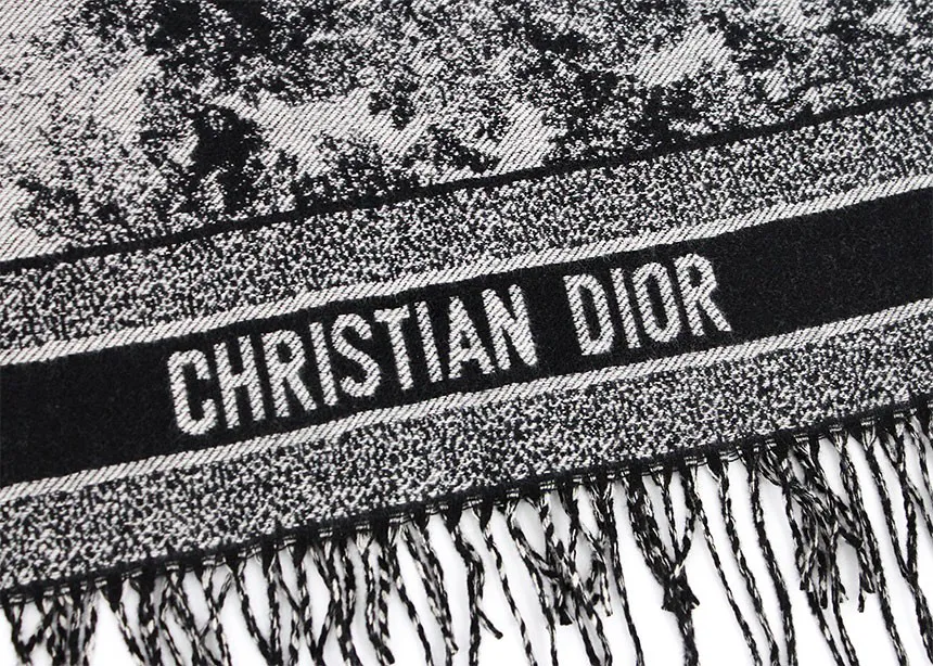 크리스찬 디올 Toile De Jouy 소바쥬 클래식 울 자카드 태슬 숄 머플러 🍀#3029