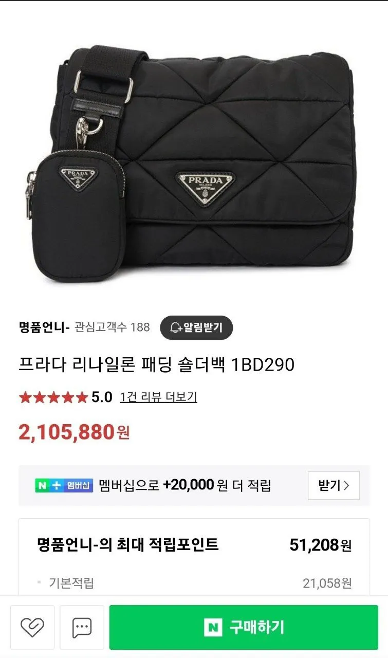 프라다 리나일론 패딩 숄더백